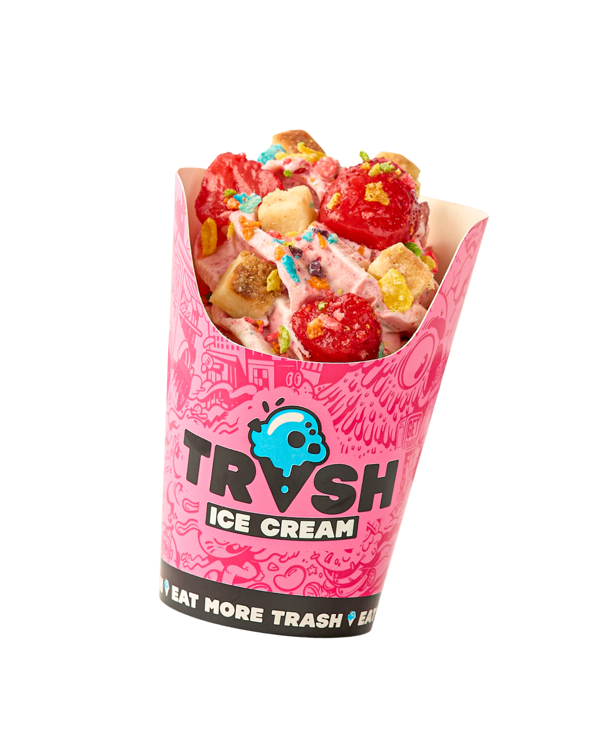 Choose from vanilla, chocolate, or dairy-free ice cream for the base of your sweet Trashy confection.